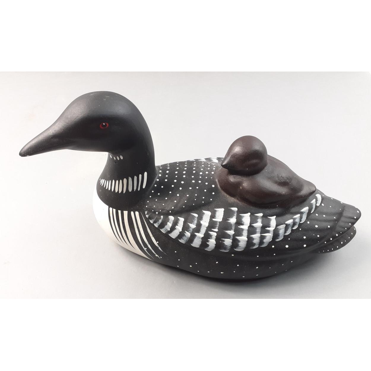 A large decorative ceramic hand painted mother moorhen and chick on her back - made in Canada - 15cm height x 30cm length approx