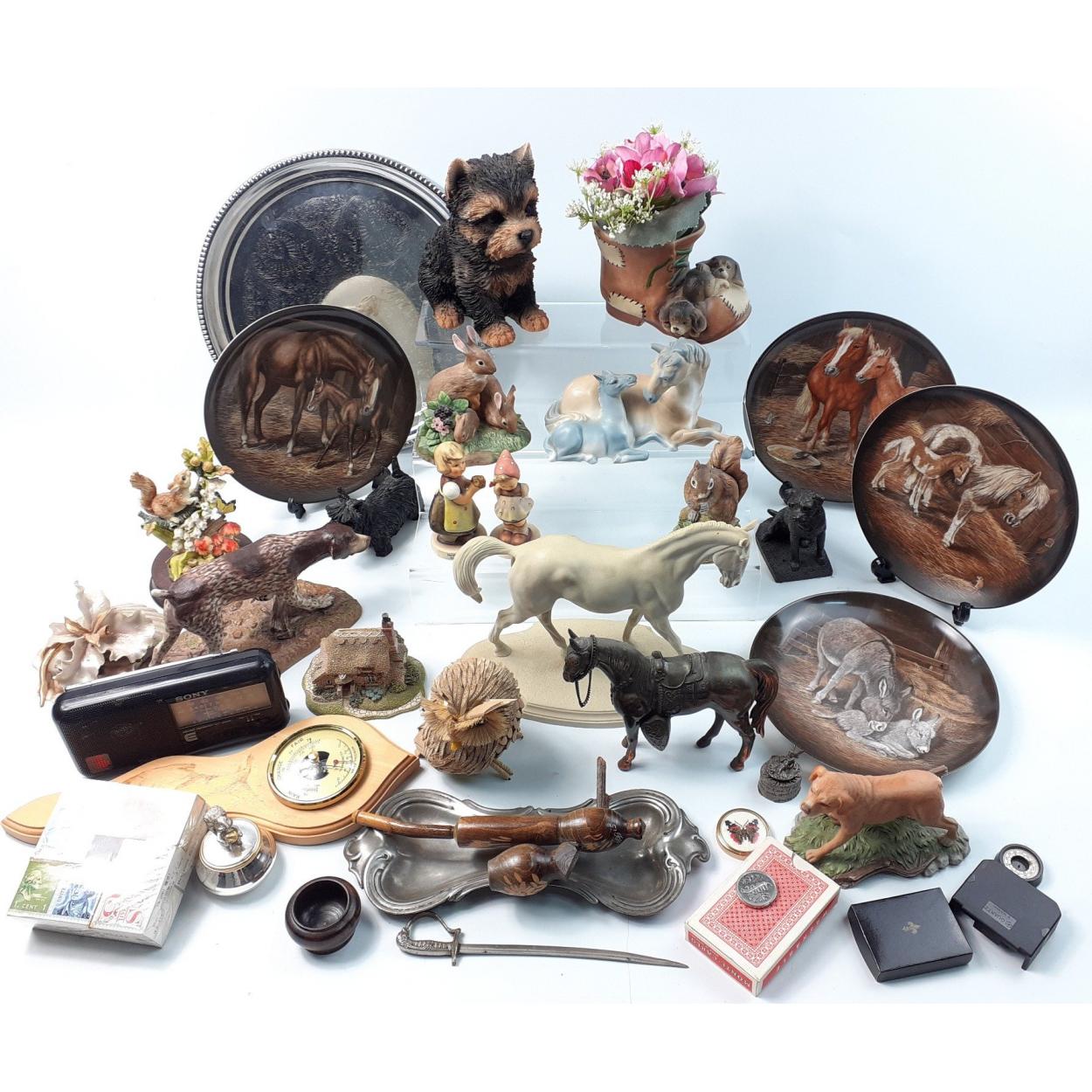 A mixed box of ornamental figurines etc to include Franklin Mint horse models and much, much more