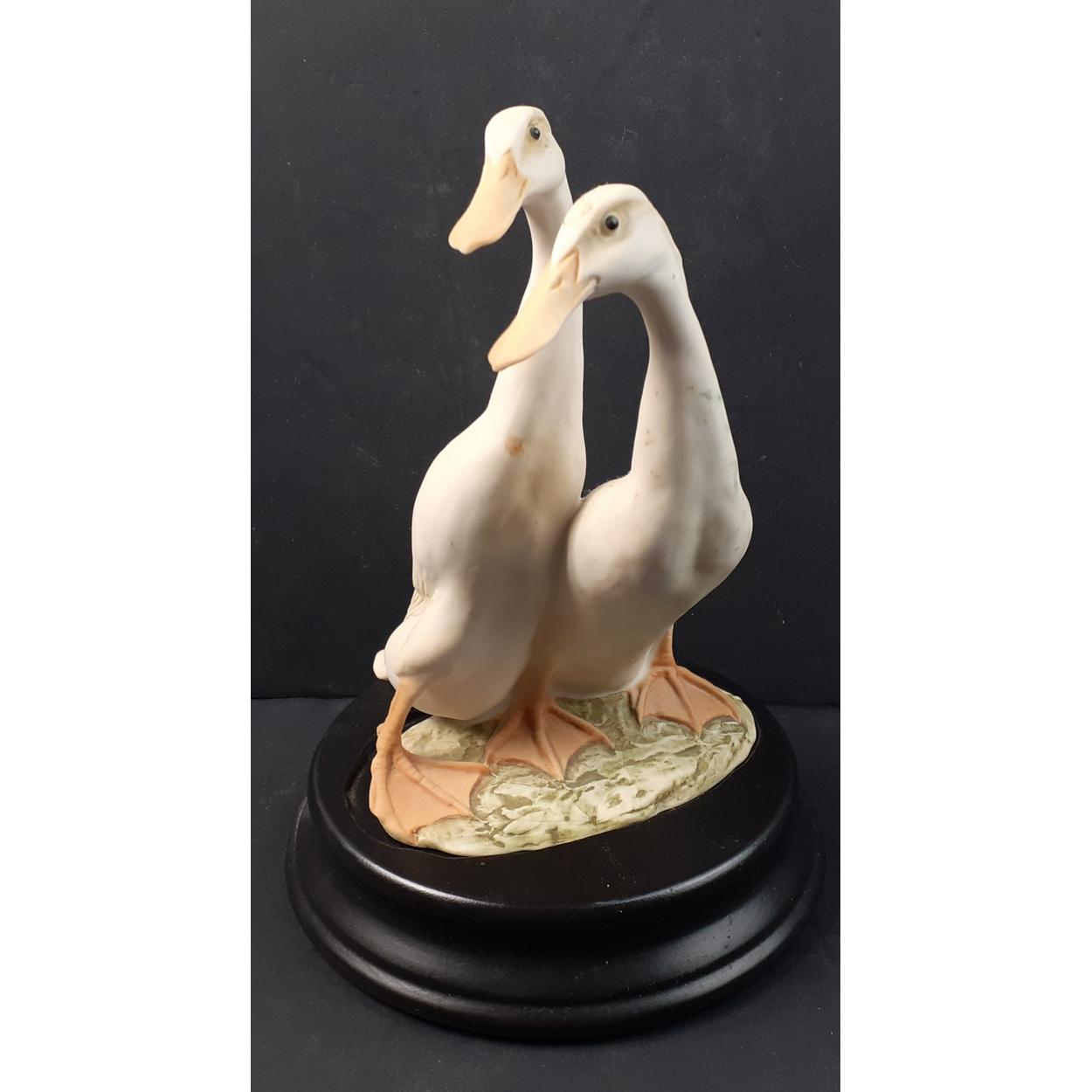 KAISER hand-painted PORCELAIN geese ornament No 523 stamped to base on a plinth- dimensions height 20cm x 13cm width approx