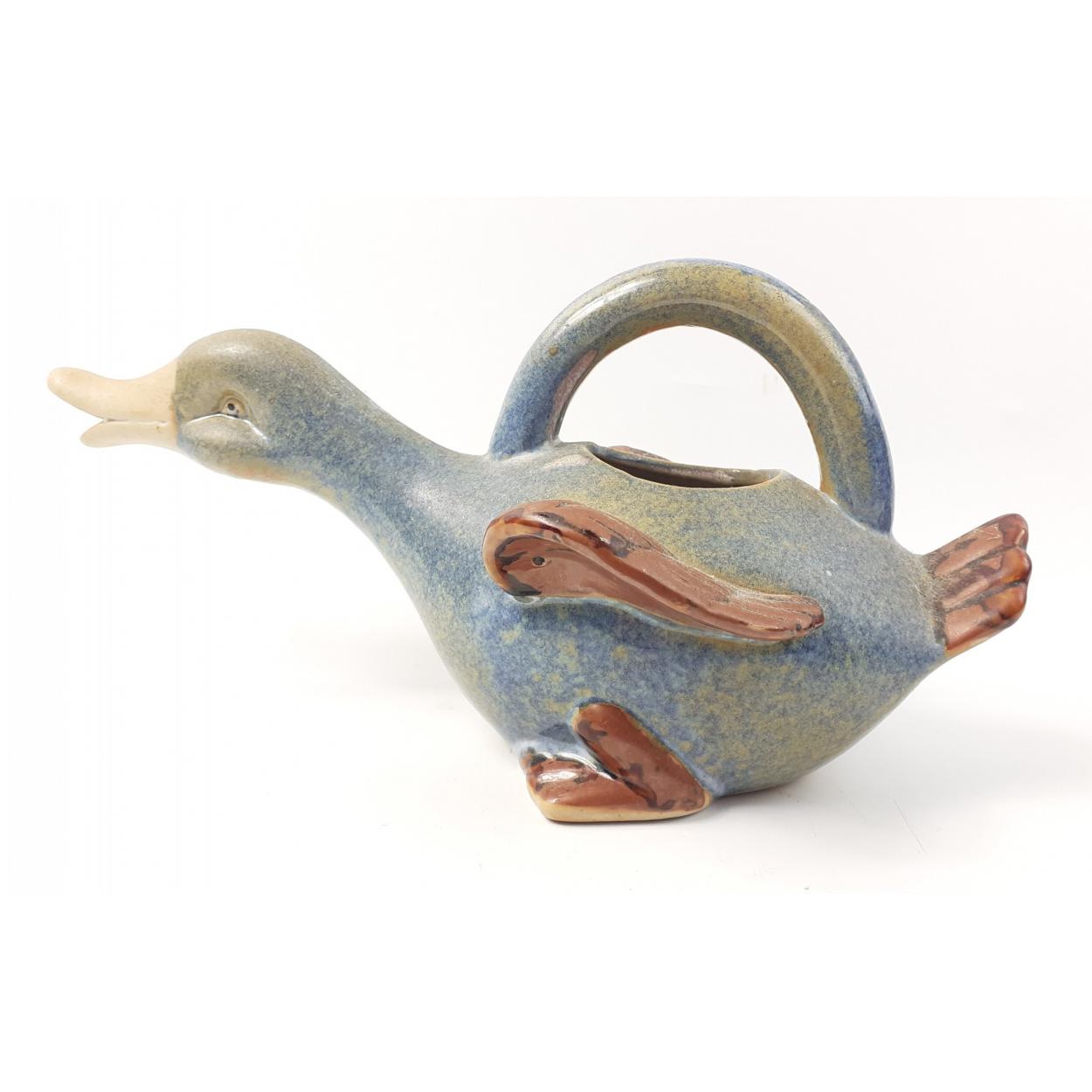 AMERICAN STUDIO NATURAL GLAZED POTTERY DUCK water-can (signed to base inverted 'Black Ginger' but signature indistinct) - dimensions 30cm length x 16cm height approx