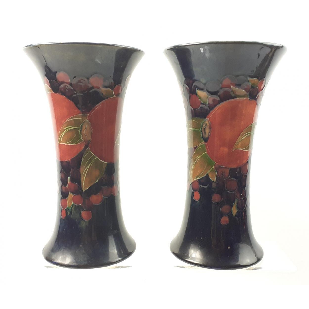 A pair of William Moorcroft trumpet vases in lovely condition. Each 21cm tall. Would be a great addition to any collection.