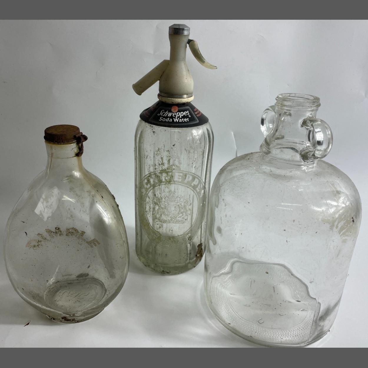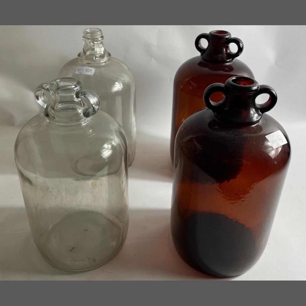 there is a smaller half bottle with yellowish staining on the neck which is cracked, also a couple or so larger bottkles with odd historical cracks but intact, the remaining in remarkably good worn condition. 21 bottles in total.