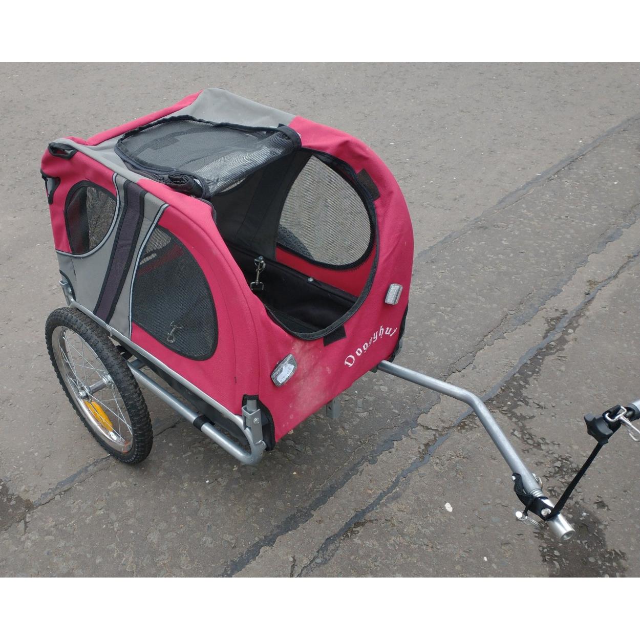 WOOF WOOF! DOGGYHUT PET TRAILER in red and black, let your pooch travel in style whilst you do all the work with this bicycle attachment.