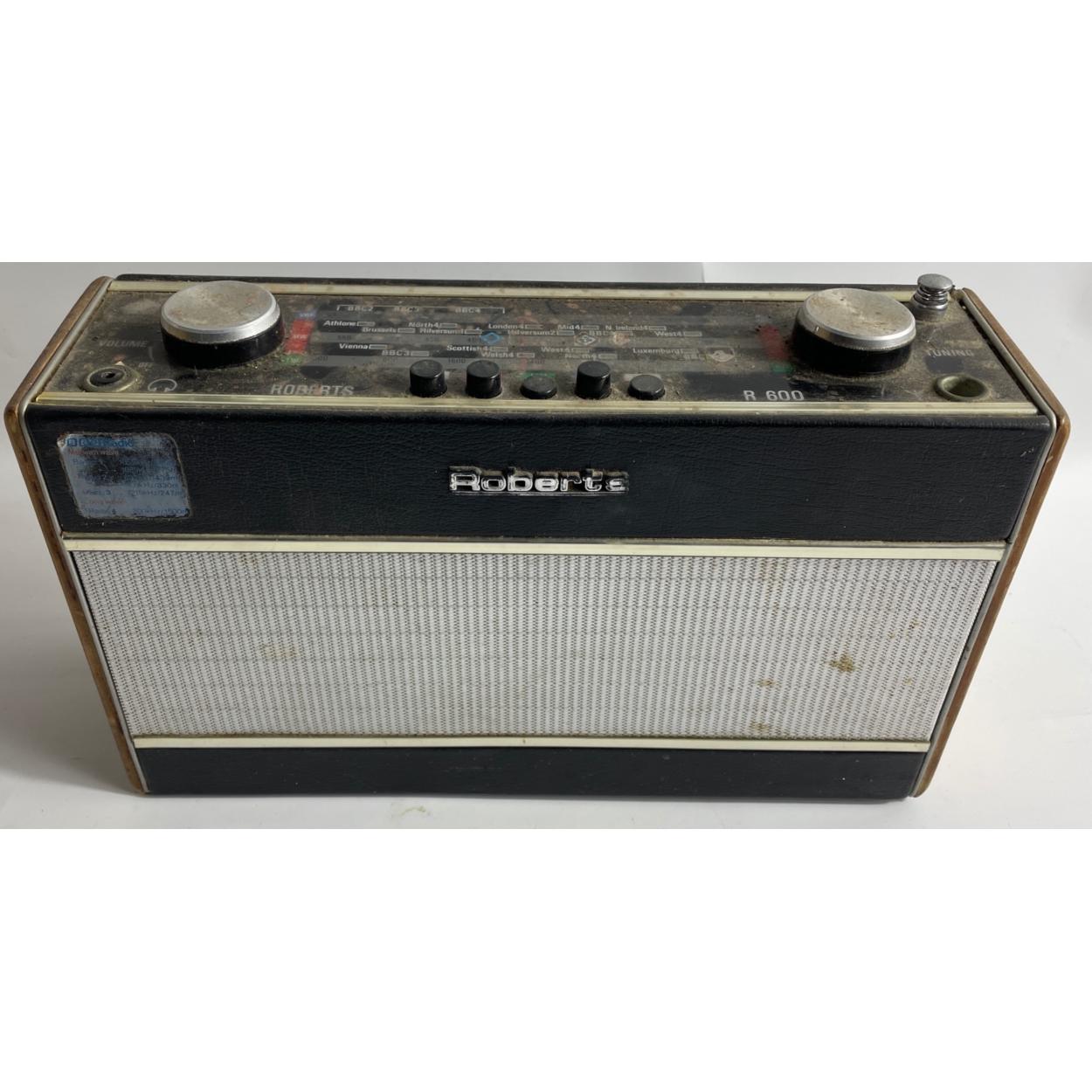 Vintage ROBERTS R600 transistor radio VHF/LW/MW in wood and black leather