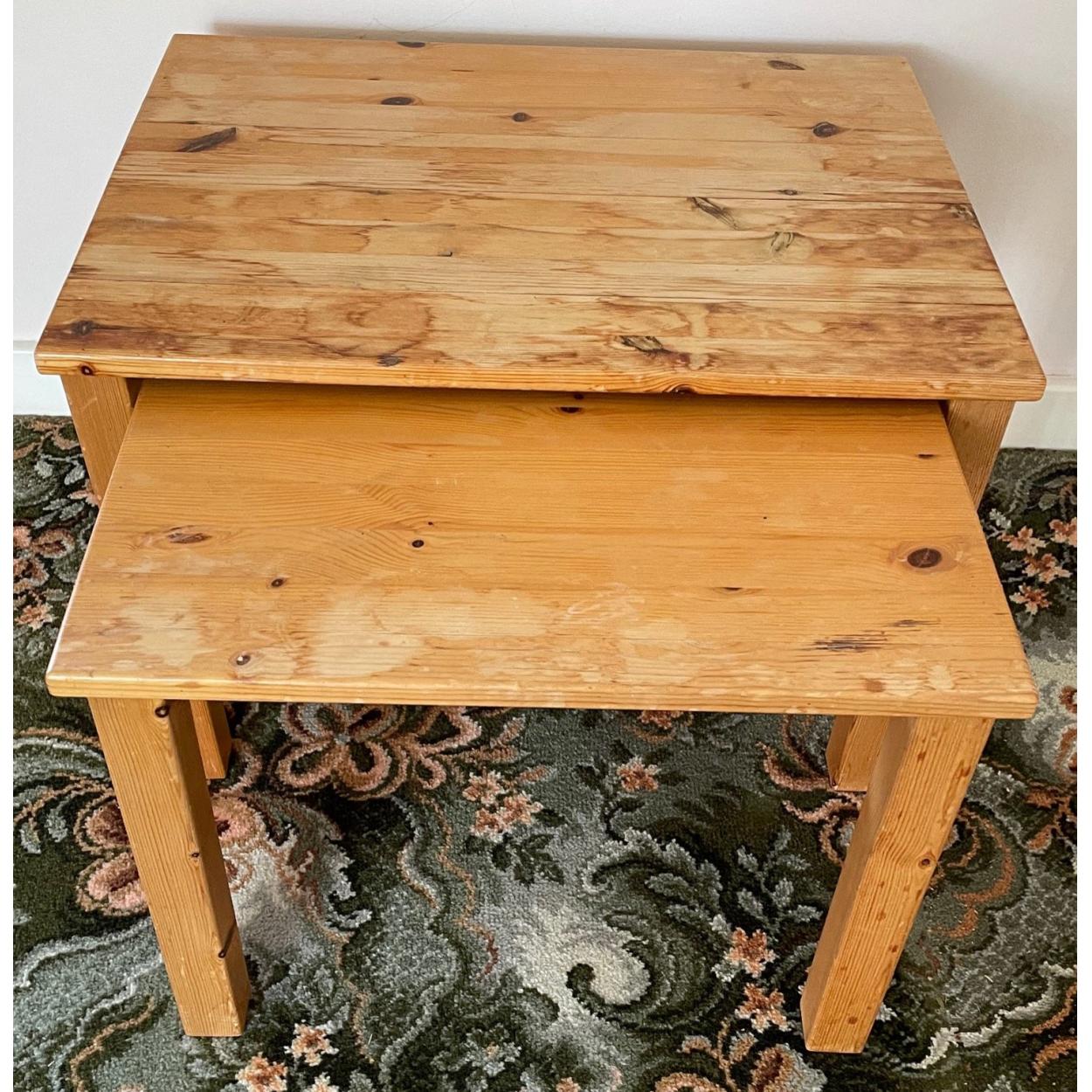 A rickety nest of two pine low side nest of two tables just ready for UPCYCLING!