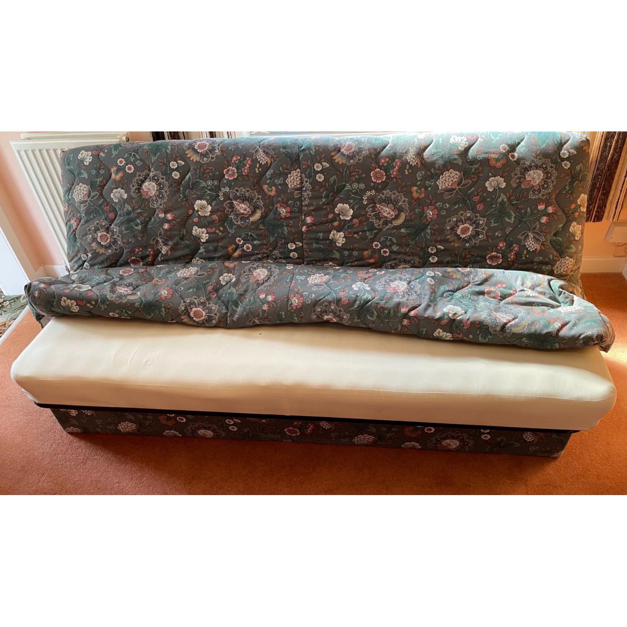SUPER QUALITY & COMFY! A DOUBLE FOLD OUT QUALITY BED-SETTEE with a c1970's floral loose cover width 195cm(loose cover pulled back to show the mattress)
