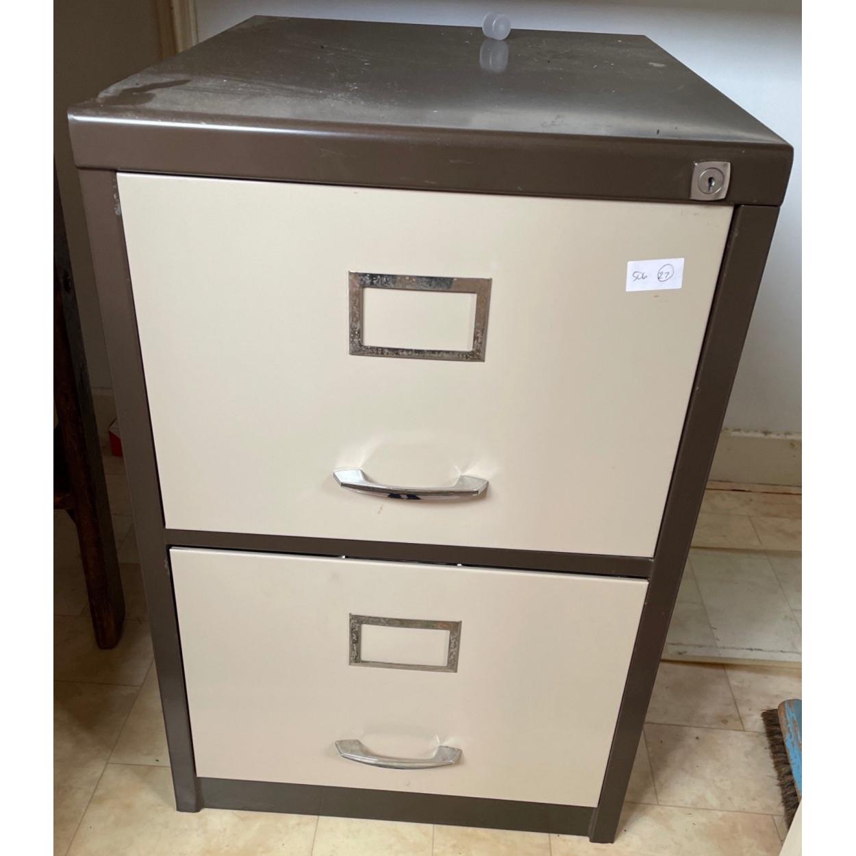 A two drawer filing cabinet ( no key but easy to buy the barrel and new key from the internet