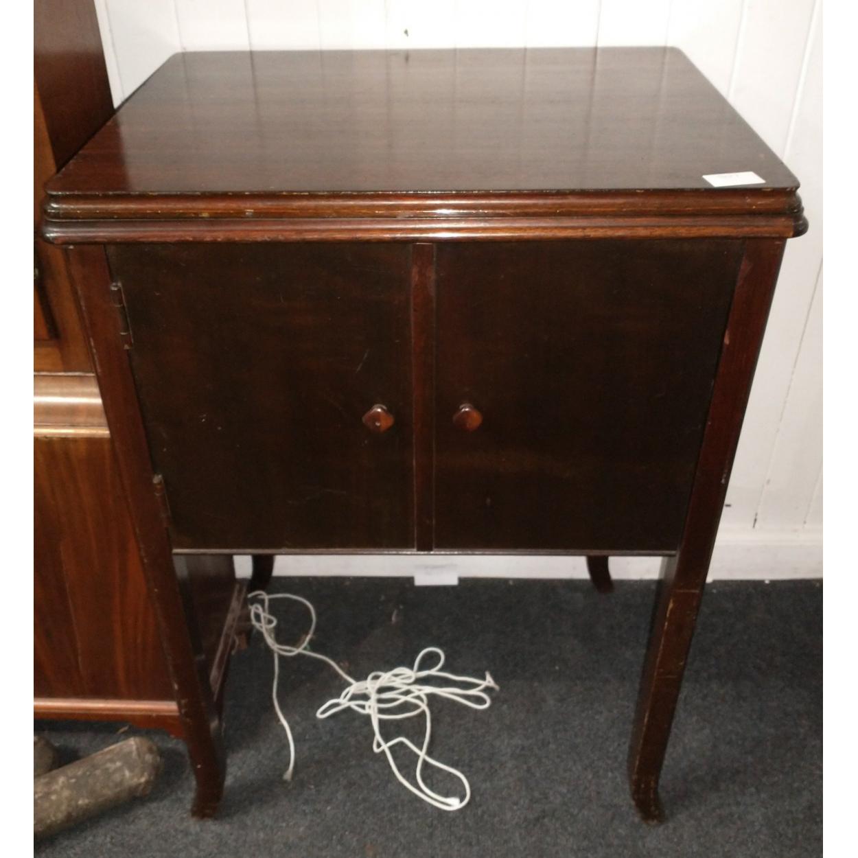 An old SINGER SEWING MACHINE cabinet in dark wood finish dimensions 55cm length x 43cm