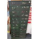A FABULOUS ANTIQUE ex-Milliner's old pine drawer cabinet with 24 drawers, odd handles been replaced over the years which ‘Just adds to its Magic!' - SO DIFFICULT TO FIND A DRAWERED CABINET WITH THIS PATINA!!....and 24 drawers WOW!