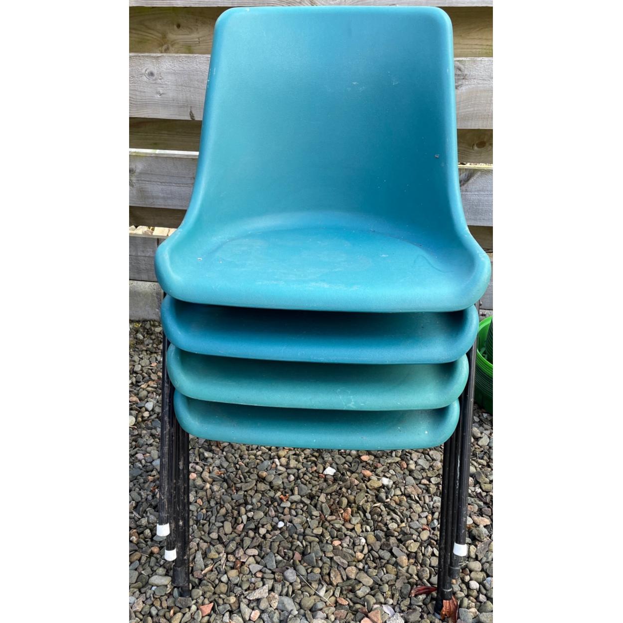 Four RETRO blue plastic stacking chairs ( Music Hall style)