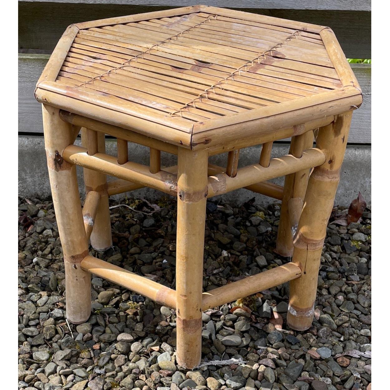 A HEXAGONAL BAMBOO side table - ideal for the lounge or garden!