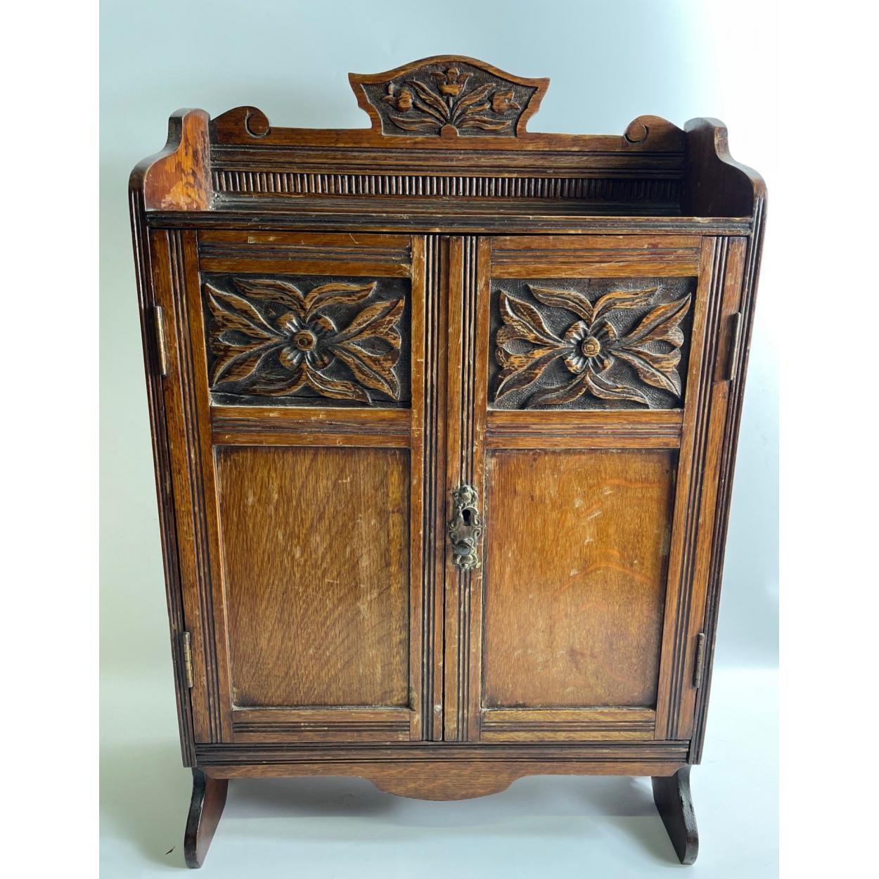 VICTORIAN ORNATELY HAND CARVED corner cupboard with key