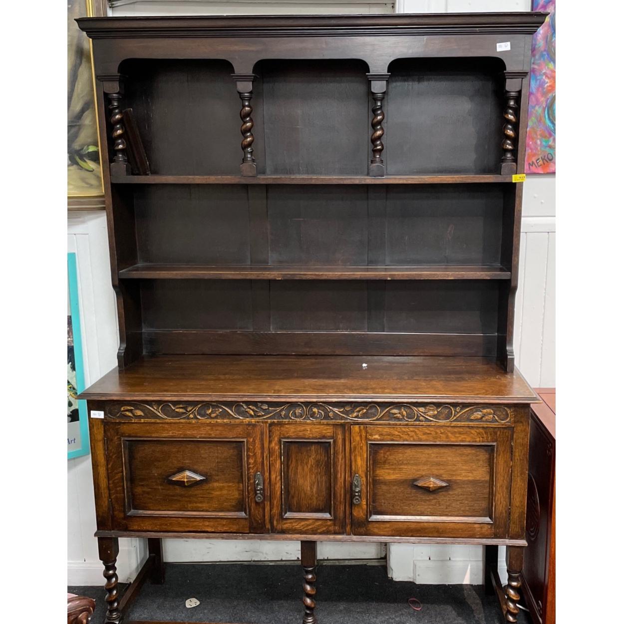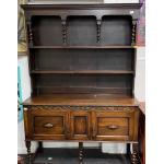 A LATE VICTORIAN DRESSER ON candy twist legs and two cupboards with plate rack gantry 137cm length x 43cm depth x 198cm height