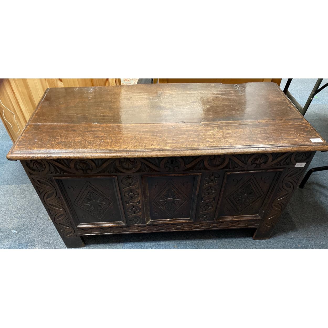 An old cGEORGIAN lidded OAK Kist 115cm x55cm x 63cm height