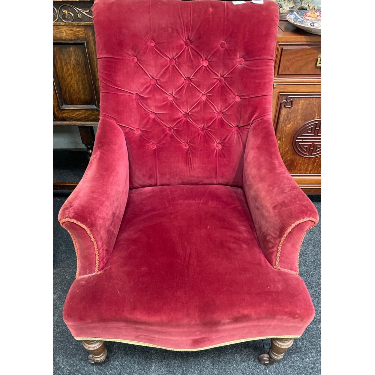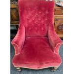 Small vintage RED VELVET chair with gold trim and button back, on castors, height approx 90cm, seat approx 35cm from floor - VERY COMFY!