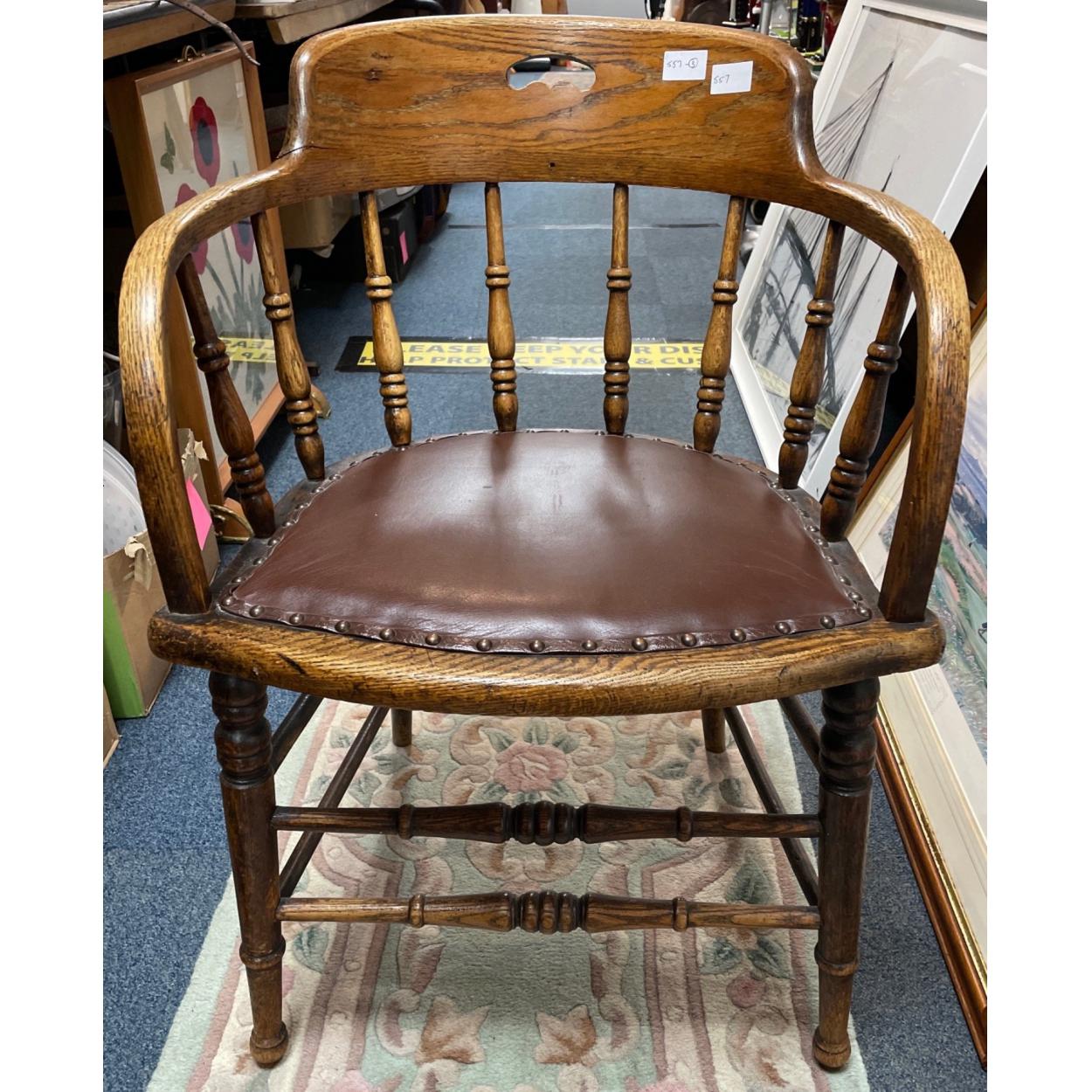 A vintage OAK CAPTAIN'S CHAIR with padded leather seat, stands approx 70cm high.
