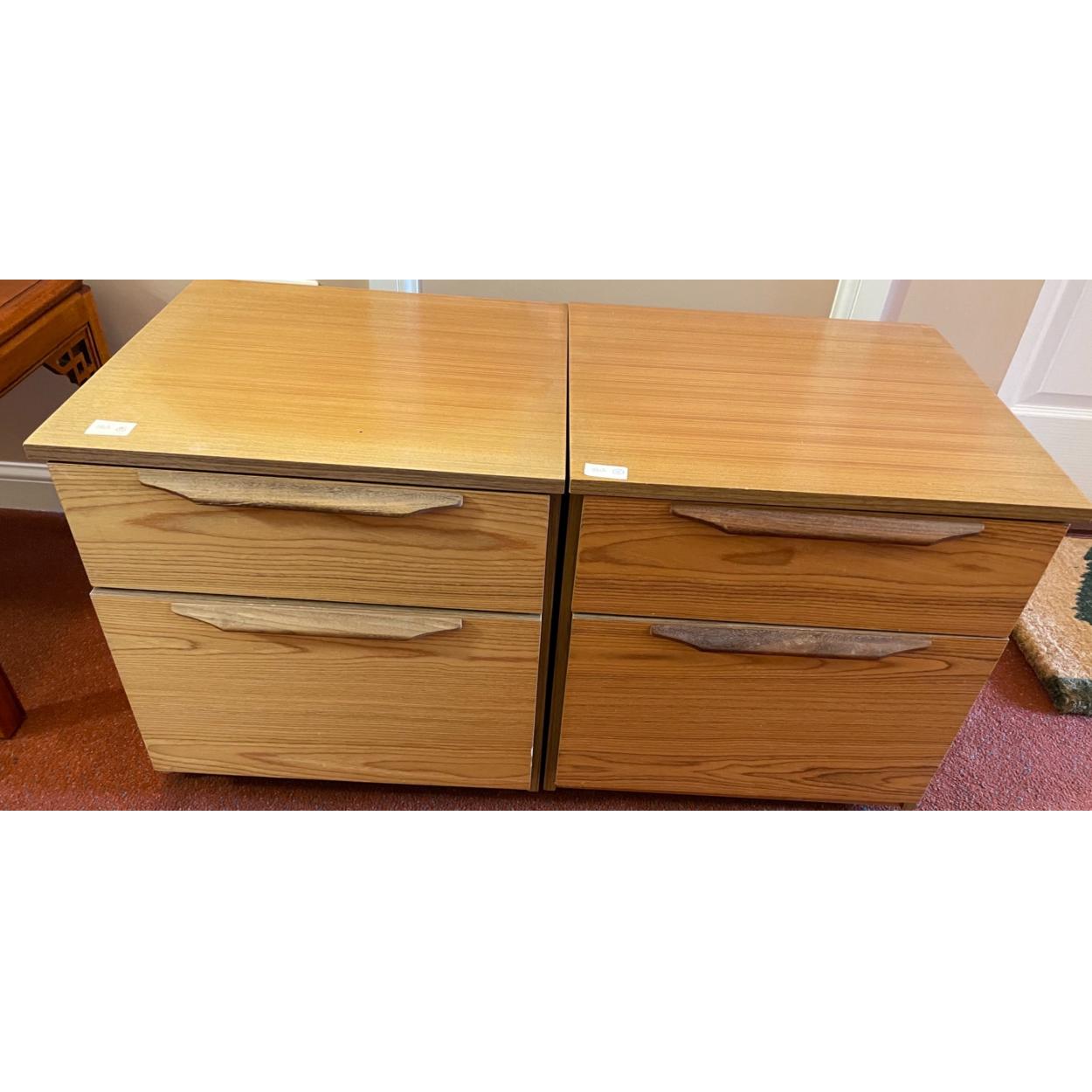 A pair of bedside cabinets with drawers top dimensions 46cm x 48cm