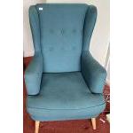 A modern (only a couple of years old!) easy lounge chair in blue fabric with nice light ash legs - still with fire retardant label attached.