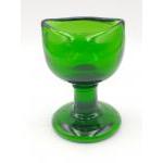 A vintage green glass eyewash bath standing approx 7cm tall.