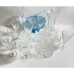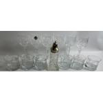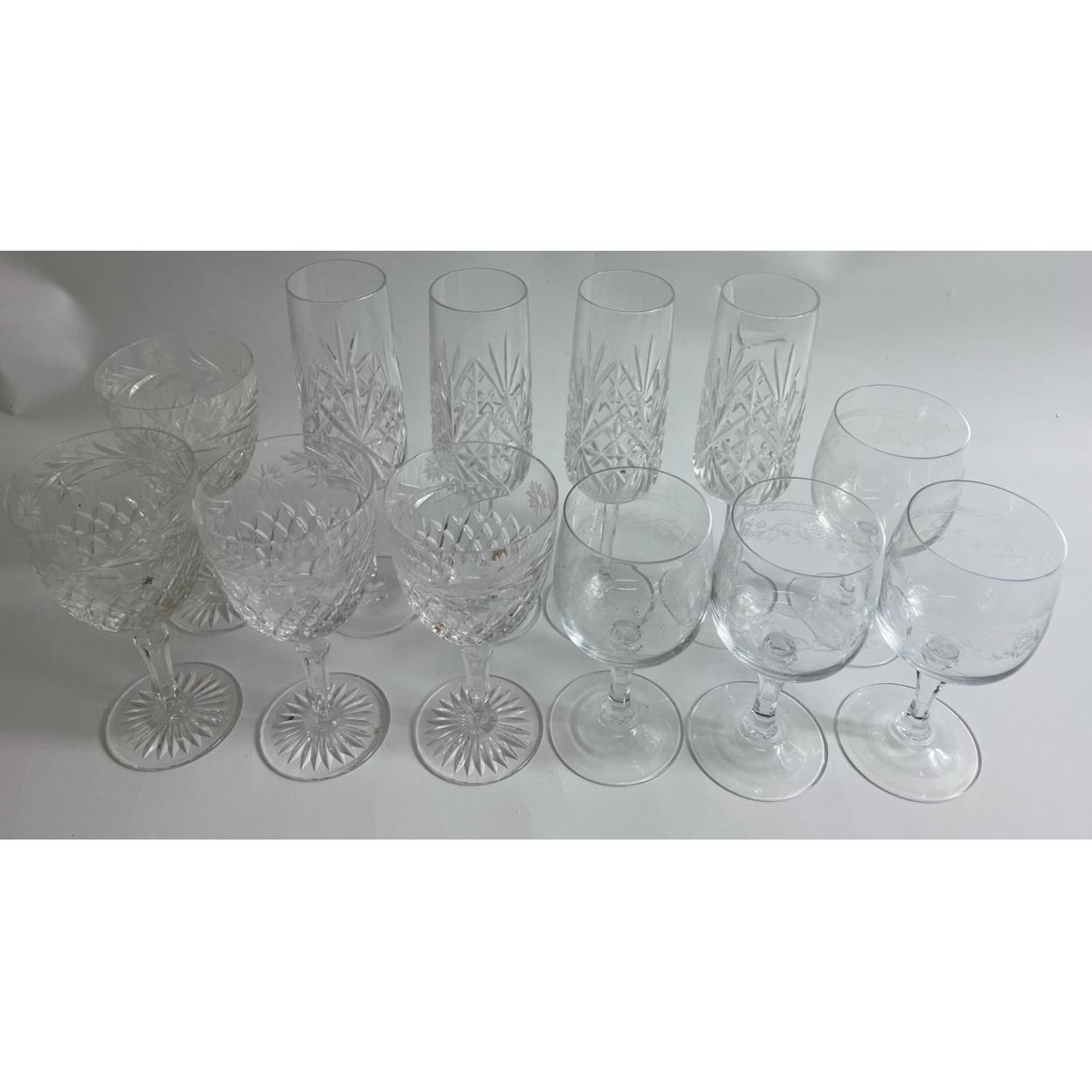 A collection of three sets of glasses, two crystal sets, large wine and champagne flute with four BEAUTIFUL etched GLASSES wine glasses - TOP NOTCH! 12 pieces total