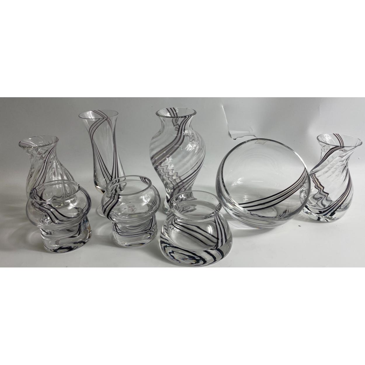 CAITHNESS GLASS from the PANACHE RANGE designed by Colin Terris and Alastair MacIntosh in 1987 to include a half moon bowl plus other vases, some pieces may be slight seconds.