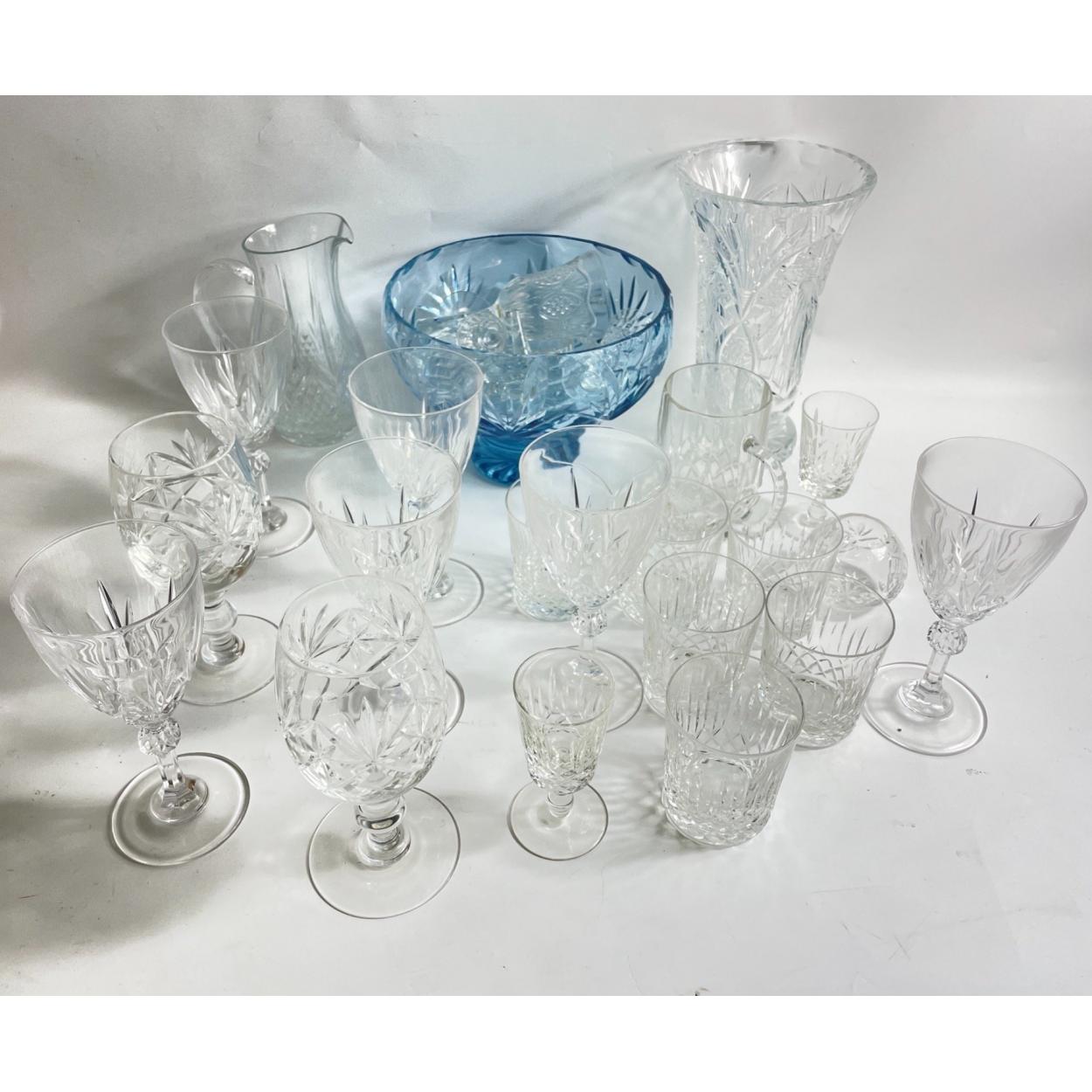 A mixed lot of CRYSTAL to include a JAMPOT WITH LID, a VASE (15cm), a BOWL on 3 legs (19cm diameter) plus a cut-glass ROSE BOWL with no lid (approx 15cm) a vase and a jampot.