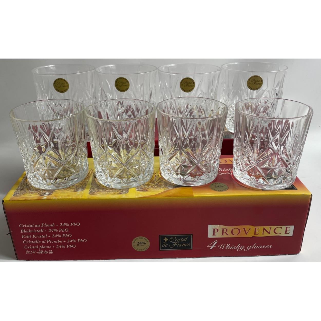 Two 4 packs of large and small crystal glasses still in their original boxes by CHANTILLY AND PROVENANCE