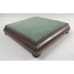 An cEDWARDIAN restrained square footstool only 6cm high with a wooden base and sea green velour cover approx 25 x 25cm.