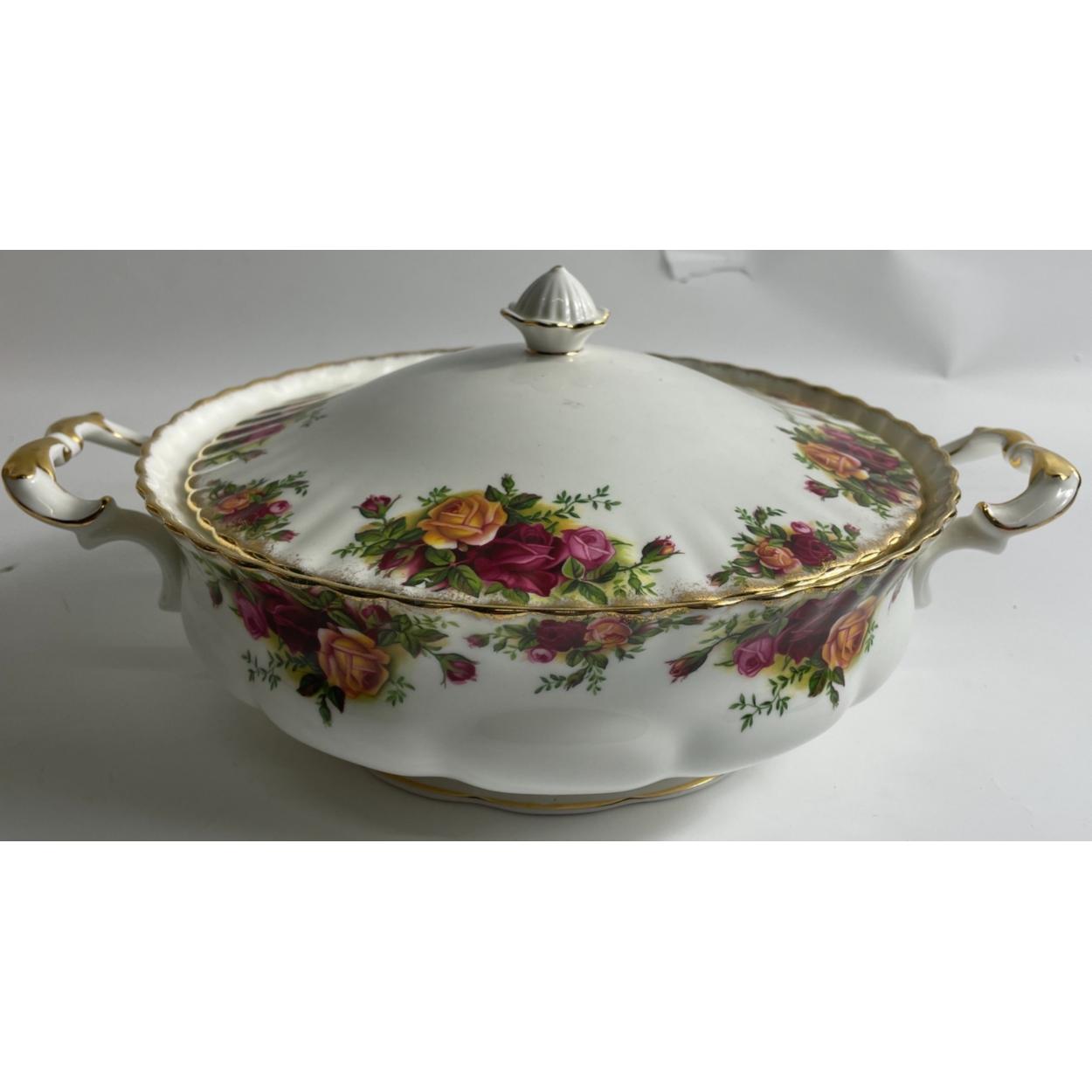 A ROYAL ALBERT Old Country Roses lidded vegetable dish approx diameter 23cm .