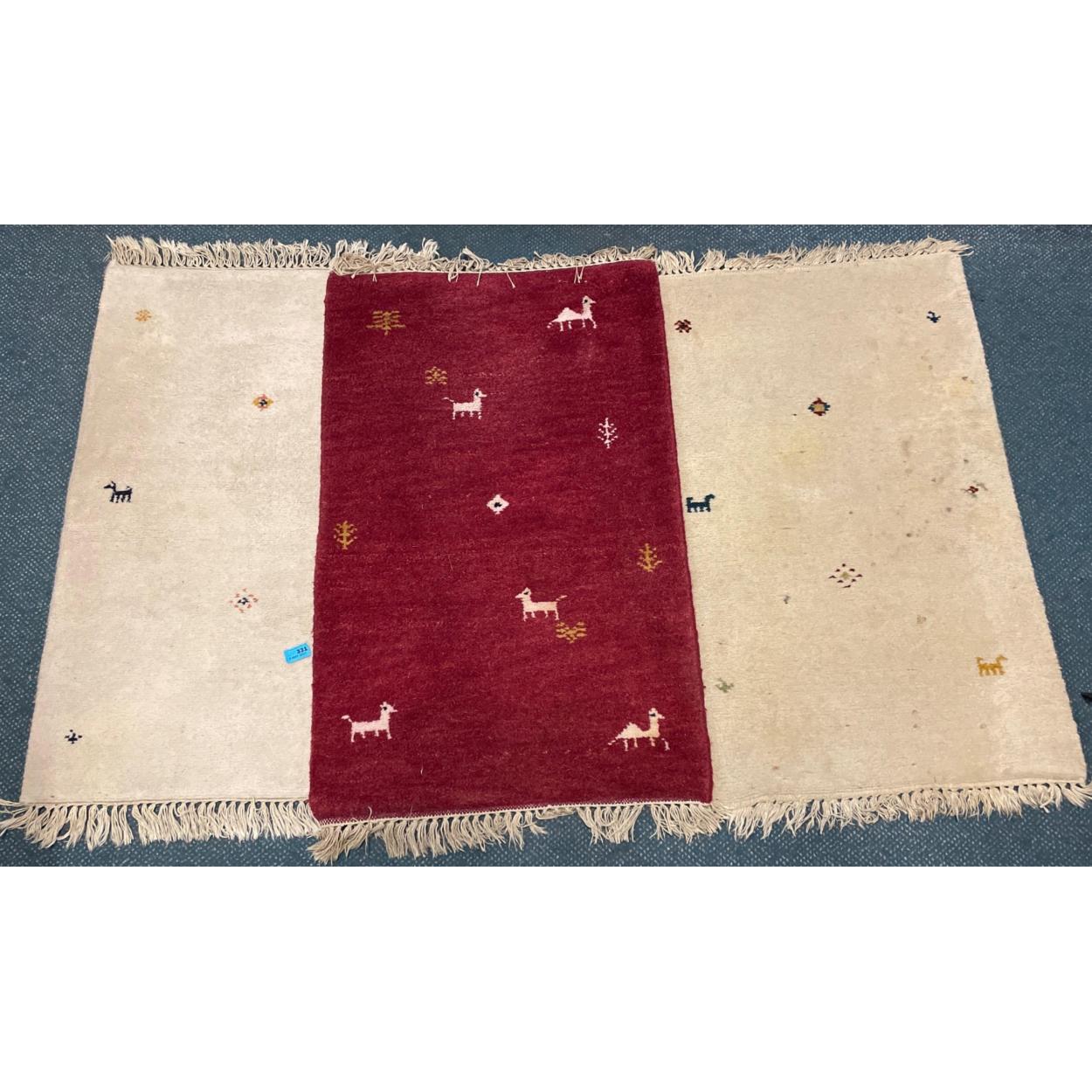 Three IKEA pure wool RUGS 60 x 90cm, 2 cream based, the other red.