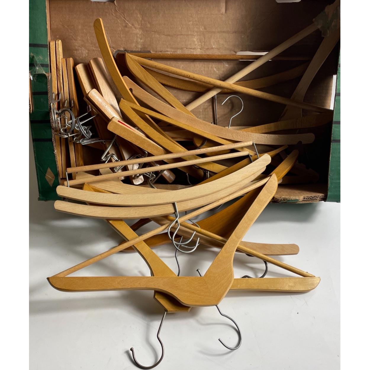 A mixed box of QUALITY wooden clothes hangers to include 6 for hanging trousers (from the days when you wore suits to the office)