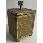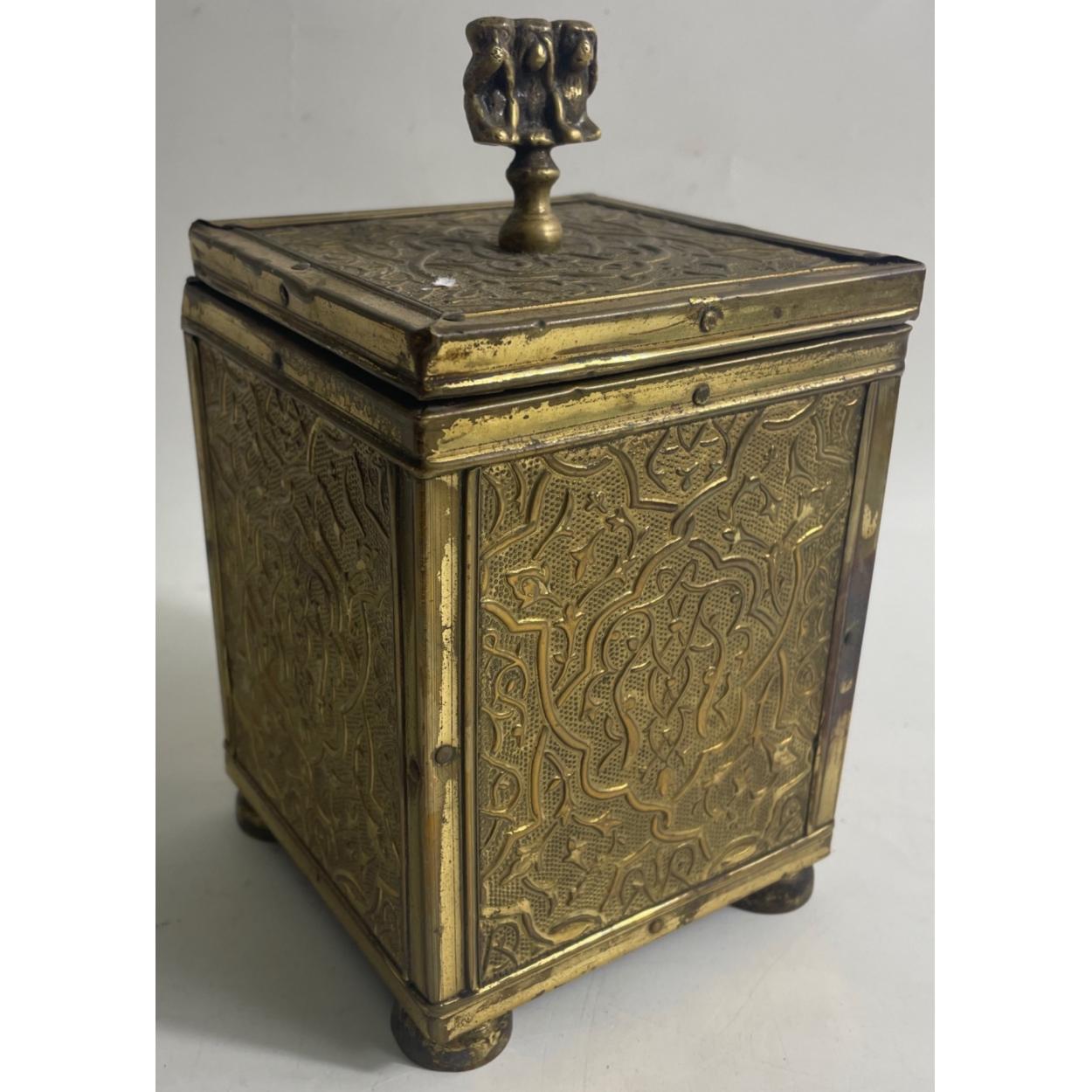 ANTIQUE brass metal effect(probably Indian) TEA CADDY with the 3 wise monkeys acting as a handle 'SPEAK NO EVIL SEE NO EVIL HEAR NO EVIL