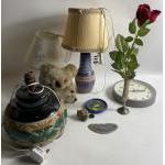 A MIXED box to include 3 TABLE LAMPS, the tallest standing approx 35cm, etc.