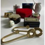 A mixed box to include 5 various trinket boxes, a CHARLES RENNIE MACKINTOSH PEWTER hip flask, a boxed ANTONIO NICCI WALLET etc