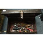 An extremely large ANTIQUE CABINET MAKERS toolbox to contain old box planes, hand drills, AMERICAN handsaws and much much more! 4ft x2ft, antique planes, etc etc approx