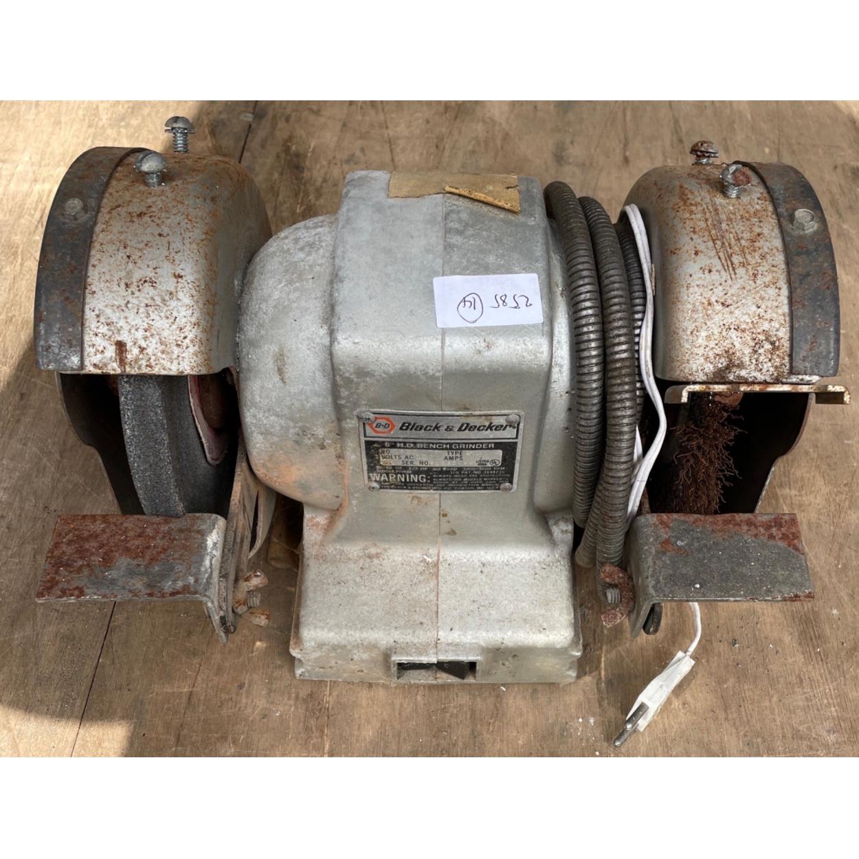 An old BLACK AND DECKER bench grinder with wire brush also with a metal flexi cable fitting