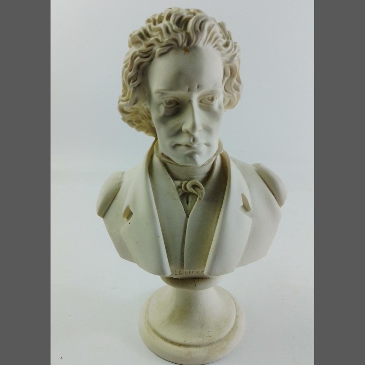 An alabaster bust of Beethoven standing approximately 22cm tall.