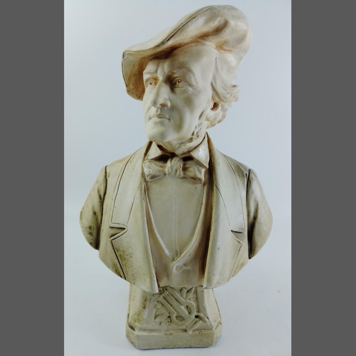 A plaster bust of Richard Wagner standing approximately 32cm tall. The bust is well detailed.