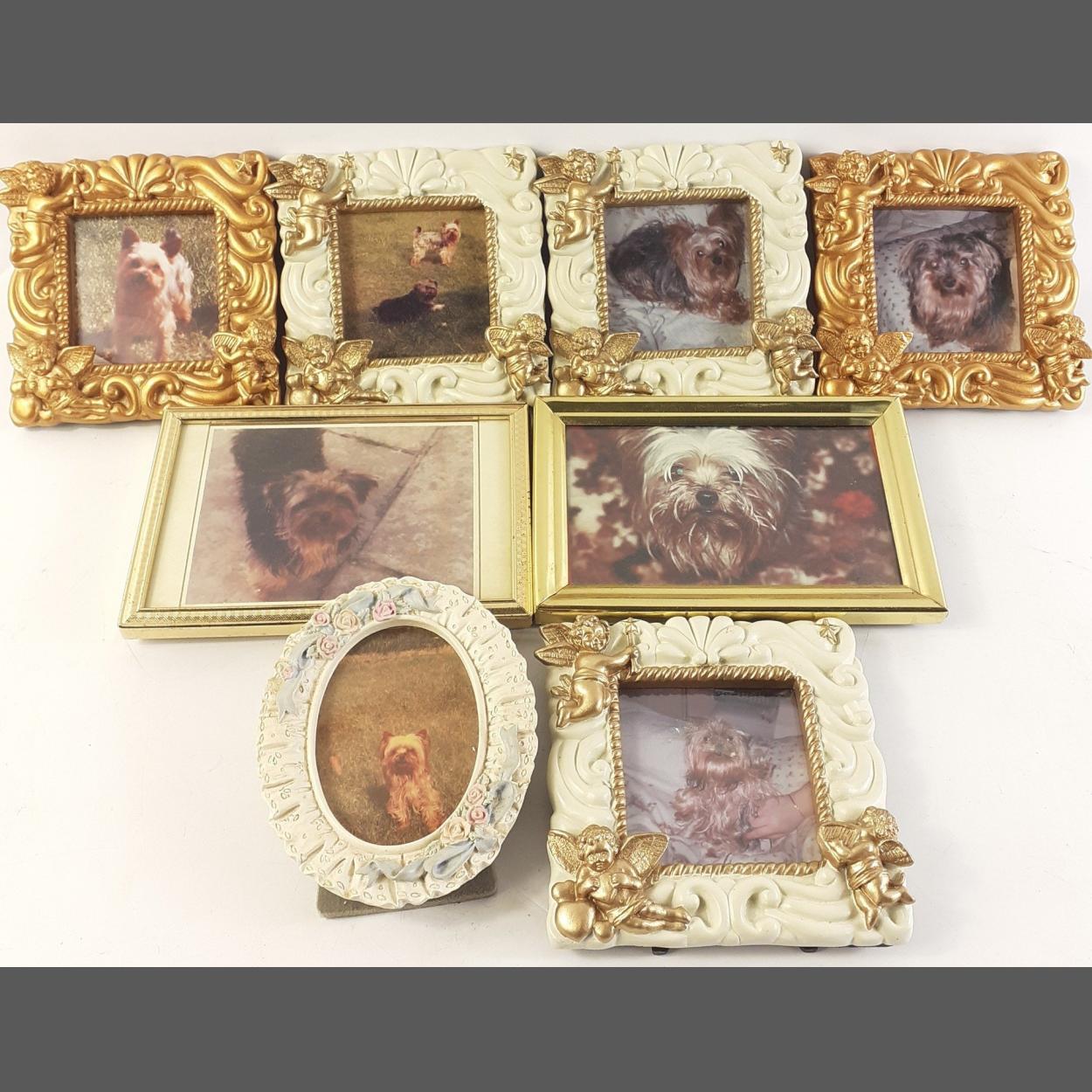 A small collection of nine pictures of dogs. Elaborate frames approx 12x12cm