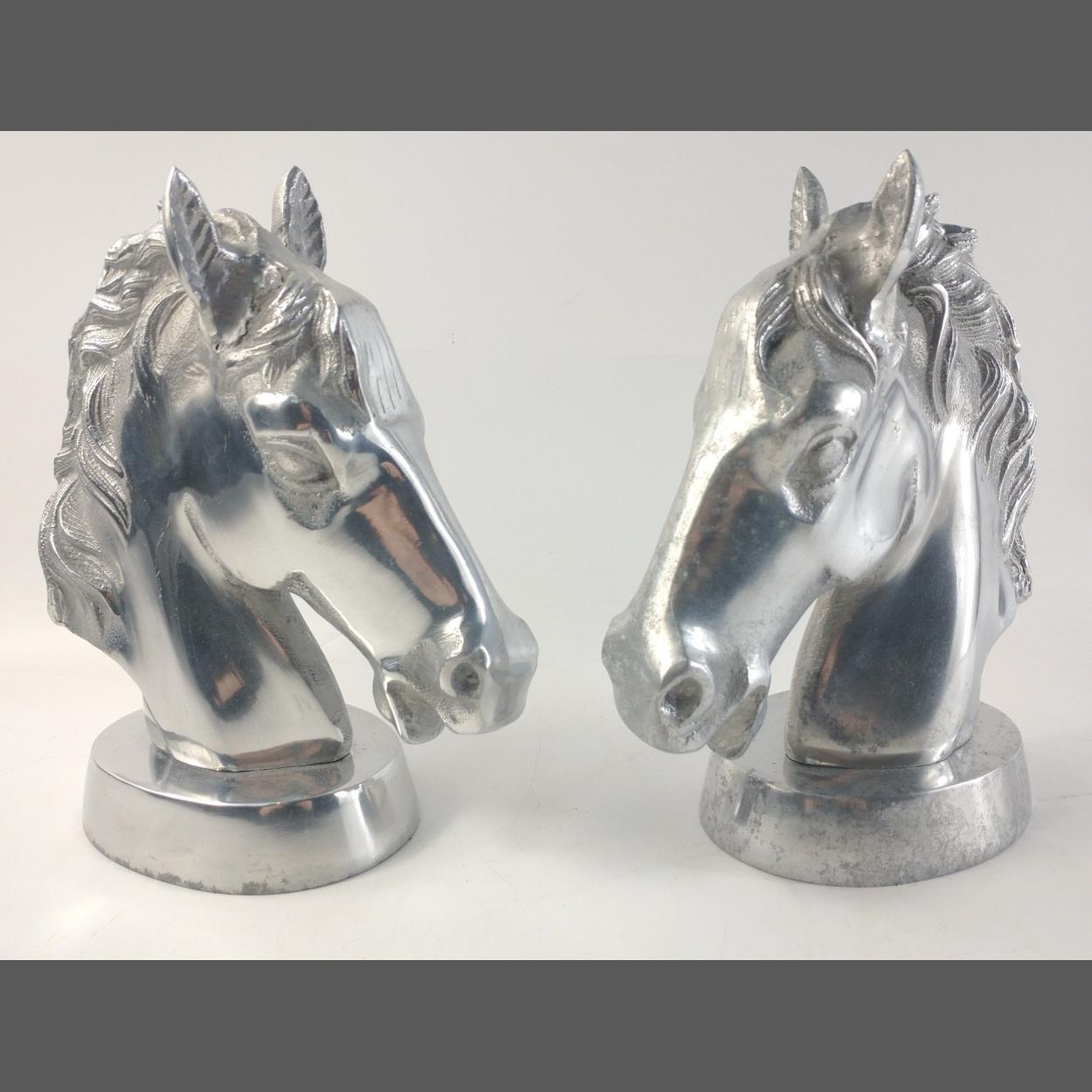 A wonderful pair of well sculpted chrome plated decorative art Horses' Heads. Each standing 23cm tall approx and in good condition.