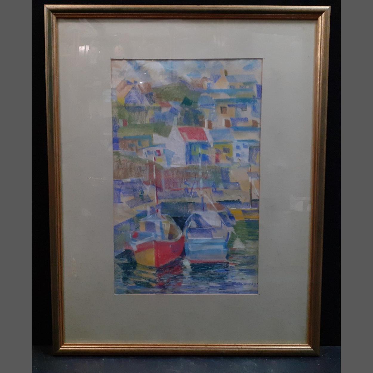 From The Paisley Art Institute Exhibition - a crayon view of Crail by JOHN McCUTCHEON. Frame size 73 x 57cm approx, visible picture 48 x 30cm approx