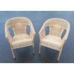 Two wicker armchairs. In fair condition. 80cm high at back.