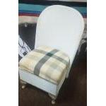 A padded SQUIBB wicker chair with storage space underneath. Stands 84cm at back approx.