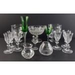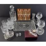 A mixed lot of glassware to include a boxed set of attractive tinted port glasses, crystal tray, decanter, lidded bowl etc.