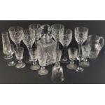 A good crystal lot to include whisky decanter, six large wine glasses, six small sherry glasses and other pieces.