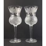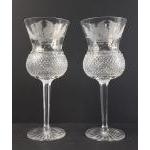 Four large EDINBURGH CRYSTAL wine goblets in the iconic frosted thistle pattern and wrapped diamond cut pattern to bodies. Each stands 21cm tall and has no damage.