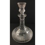 A beautiful ANTIQUE pressed glass ship's decanter with no markings, etched design of thistles. Stands approx 13" tall
