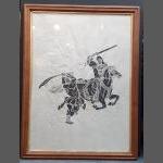Chinese framed image of Mongol Warrior - possibly Genghis Khan. Appears to be screen print approx on hand made paper. Frame size 72 x 55cm
