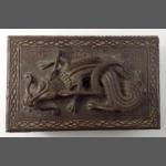 An ANTIQUE Oriental carved wooden box with a fierce 3D dragon on the lid. The lid has become detached from the base which is divided into 3 sections lined with felt. Measures 31x19x8cm approx. With some restoration this could become a truly impressive piece. Comes with key.