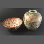 A rather attractive Chinese ginger jar standing 24cm approx with no lid. Also a 24cm diameter Oriental bowl, marked to base.